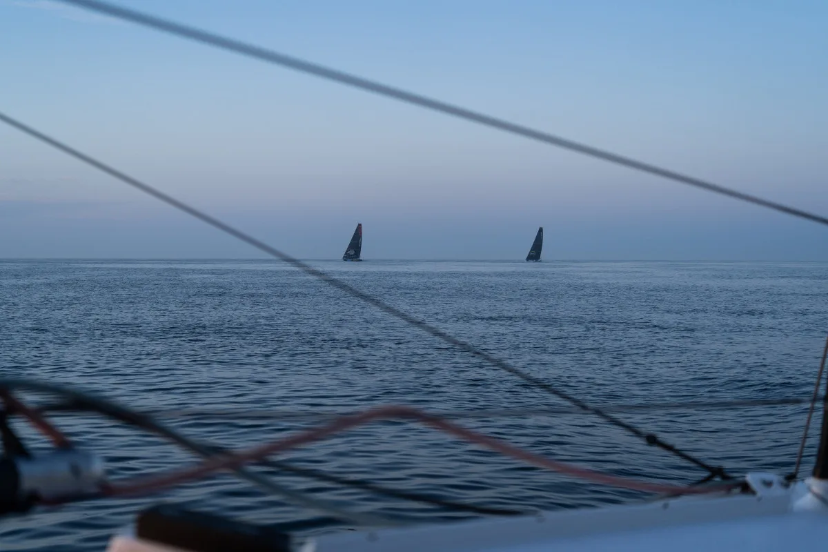 Dès la ligne franchie hier après-midi, le décor s’est imposé : un ciel opaque, un souffle à peine perceptible et un courant prêt à piéger le moindre excès d’optimisme. Si la brume s’est rapidement dissipée, elle a laissé place à une Manche insaisissable, alternant risées fantomatiques et longues phases de calme. Entre la côte et le DST de Calais, chaque bord a pris des allures de jeu de patience, où la précision du placement et la lucidité tactique dictaient la moindre avance. « C’était vraiment compliqué, avec un vent très irrégulier. Chaque mètre pouvait faire la différence, et il a fallu se battre pour rester dans le match. », racontait cette nuit Will Harris (Malizia – Seaexplorer), satisfait d’avoir su accrocher le peloton malgré un départ moins incisif qu’espéré. « On a choisi une route un peu plus au large, ce qui nous a permis de conserver un peu plus de pression. » Pour Benjamin Dutreux (4CAD – La Mie Câline), la soirée a été un enchaînement de micro-décisions : « C’était assez mou, avec des bandes de risées et des zones de molle. On a tenté une option près de la côte pour profiter d’une renverse de courant, mais c’était très aléatoire. Quand le vent est passé nord-est en milieu de nuit, la flotte s’est resserrée et la course a vraiment redémarré. »